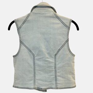 Style Tags: Denim Vest, Jean Vest, Edgy, Biker, Moto Vest, Contemporary, Sam Edelman Deco Drive, Light Blue Denim, Washed Denim, 90’s Style, 80’s Style, Casual, Biker Core, Moto, Contemporary , Denim,