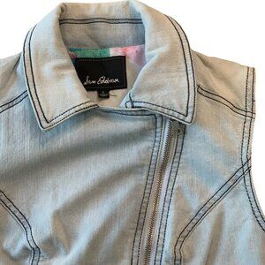 Women’s Light Blue Denim Cropped Moto Biker Vest by Sam Edelman, Size Large