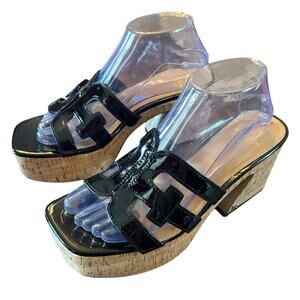 Sam Edelman Dev Black Patent Cork Platform Heels Retro Inspired NEW Size 9