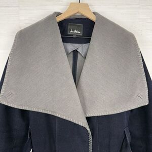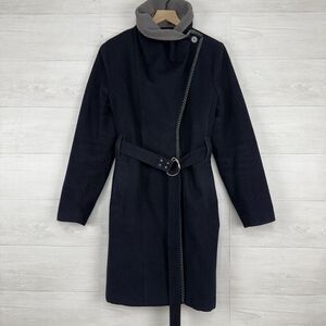 Sam Edelman Double Face Wrap Coat Women XL Navy Gray Long Belted Wing Collar