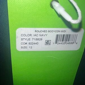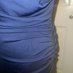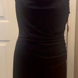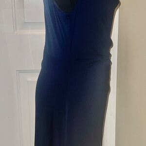This Sam Edelman dress is perfect for any occasion, whether it's a party or a business meeting. The dress is made of a polyester/spandex blend and features a cowl neck and sleeveless design.The dress is a beautiful navy blue and has a solid pattern. It is a midi-length body con style with an asymmetric hemline. This dress is design to flatter there wearer's curves. Shirring on the side. Cowl neck.Pullover styling Lined Measures approximately 21' at bust. 17' at waist ( not stretched) and at its longest 45". Please note these measurements are take with the best of my abilities. Therefore the approximately is added to the description. Dry Clean. NWT