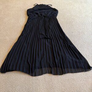 Sam Edelman Black Electric Pleated A-line Midi Dress Size 12 #02S658 Party Dress Tea Length Semi Formal Cocktails Evening Event