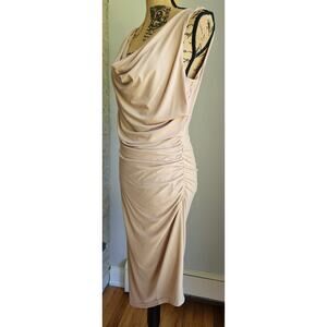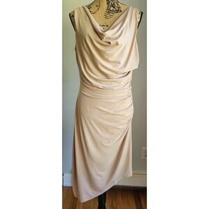 Sam Edelman Dress. Ruched Side, Asymmetrical, Taupe, Cowl Neck, Dress, Sz M