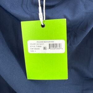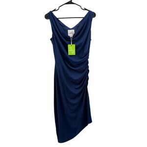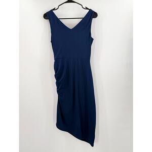Sam Edelman Dress Size 4 Ruched Bodycon Midi NWT Navy Asymmetrical Cocktail