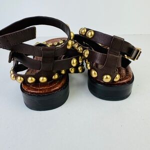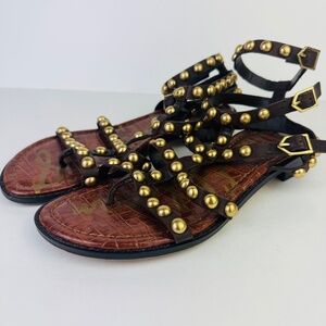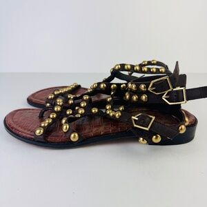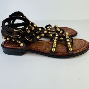 Sam Edelman Eavan Gold Studded Brown Leather Gladiator Sandals Women's Size 8M