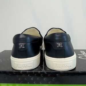 Chic and versatile, these Sam Edelman Eda slip-on sneakers feature a sleek black woven leather upper paired with classic white rubber soles. A perfect balance of comfort and style, they can easily be dressed up or down.