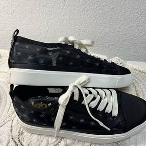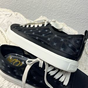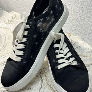 Elevate your style with these sleek black and white mesh women’s sneakers. Perfect for any casual outing, these shoes offer both comfort and a modern look. Light signs of wear. Please see pictures.