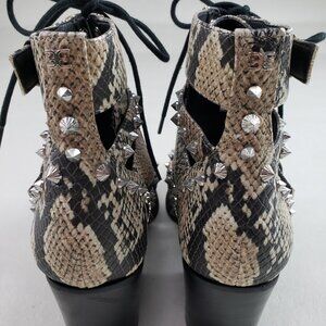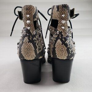 Sam Edelman Elana Studded Boot Womens 7.5 Beige Leather Snake Cut Out Ankle Heel