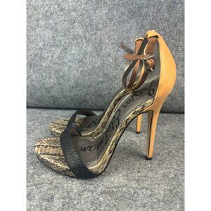 Sam Edelman Eleanor Animal Print Heels Women's 7M Brown Leather Ankle Strap