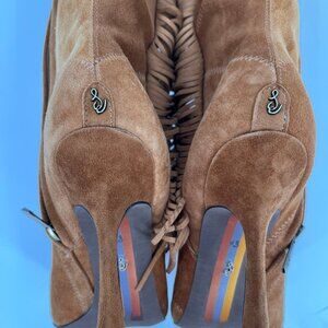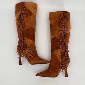 Sam Edelman Ellis Kne High Fringe Boots Brown Suede Size 8.5M Pointed Toe