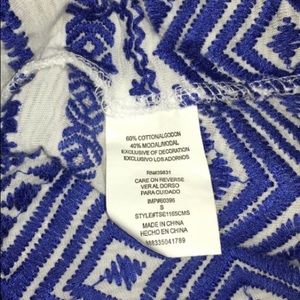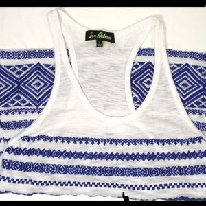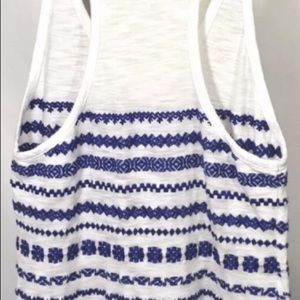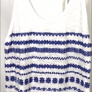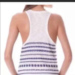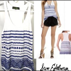 Sam Edelman Women Boho Embroidered Razor Back Tank Top White Blue Shirt SZ S