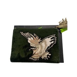 Sam Edelman Emerald Green Velvet Eagle Suede Embroidered Clutch Handbag NIB
