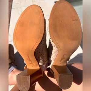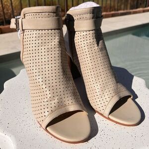 Sam Edelman Emmie Gray Nude Perforated Leather Heeled Sandal Open Toe Size 8