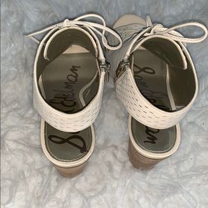 (Small chip out of leather on back of left shoe, and on the toe bed on the right shoe, shown in picture)