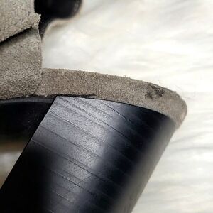 Sam Edelman Enya Strappy Gray Suede Sandals Strappy Enya Sandals by Sam Edelman with soft neutral mushroom grey suede leather. Features an edgy grommet stud detail on adjustable ankle straps. Gently pre-loved in good condition. The one part that holds down the upper strap need repaired on the upper left shoe. See photos.