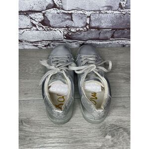 Sam Edelman Ethyl Silver Leather Casual Lace Up Sneakers Women Sz 4M US/36EU