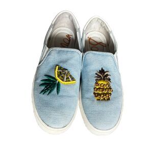 Sam Edelman Evelina pineapple/lemon embellished slip on denim shoe size 8