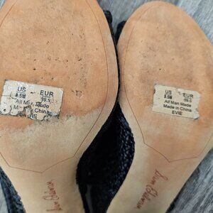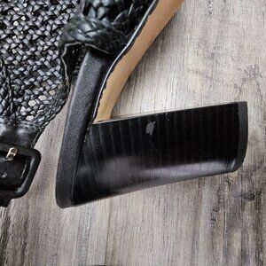 Sam Edelman Evie Basket Weave Open Toe Sling Back Black Block Heel Sandal Size 9 1/2