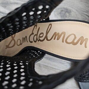 Sam Edelman Evie Basket Weave Open Toe Sling Back Black Block Heel Sandal