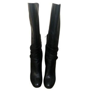 Sam Edelman Fairbanks EUC tall black leather boots with gold buckle details 7.5