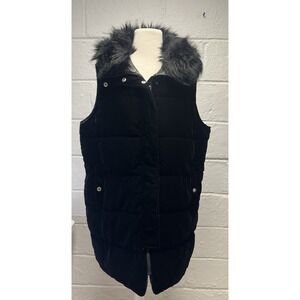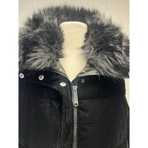 Sam Edelman Faux Fur Trim Velvet Long Vest Puffer Black Womens Large