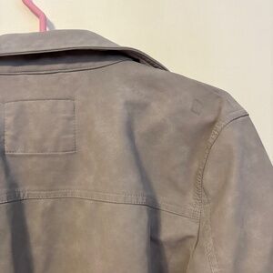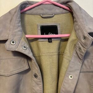 Sam Edelman Faux Leather Collared Snap Button Shirt Jacket Light Grey Womens XL