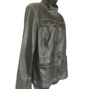 Sam Edelman Faux Leather Moto Jacket Charcoal Womens Size Large