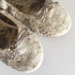 Sam Edelman Felicia Ballet Flat Ballerina Python Snake Skin Leather Bow 8.5