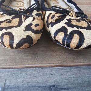 Sam Edelman Felicia Ballet Flats US 7M Leopard Calf Hair Slip-On Bow Classic