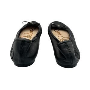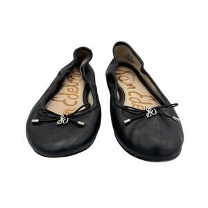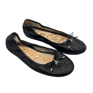Sam Edelman Felicia Black Leather Slip On Round Toe Bow Simple Ballet Flats