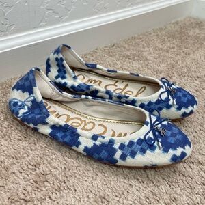 Sam Edelman Felicia Blue Ikat Aztec Print Stretch Side Bow Ballet Flats Size 8