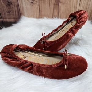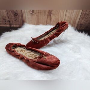 Sam Edelman Felicia Canyon Orange Velvet Ballet Flat Size Women's 7.5 NWOT