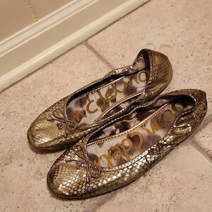 Sam Edelman "Felicia" Gold Snakeskin-Print Ballet Flats Size 9.5