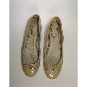 Sam Edelman Felicia Shoes Bow Ballet Flat Luxe Nude Beige Patent Leather Sz 7.5