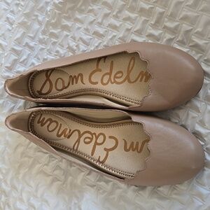 Sam Edelman Finnegan Women's Tan Leather Scalloped Edge Ballet Flats Classic