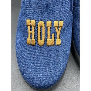 Sam Edelman Flat Denim Shoes Holy Cow embroidery design in front dark Blue Color Size 54 very cushioned very comfortable.