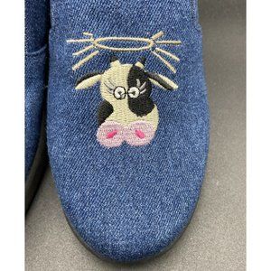 Sam Edelman Flat Denim Shoes Holy Cow Embroidery Blue Color Size 4