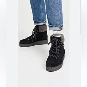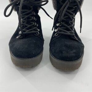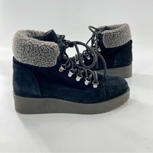 Sam Edelman Franc Black Suede Leather Hiking Boots Grey Shearling