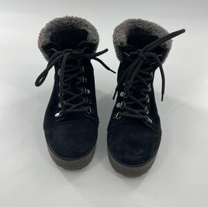 Sam Edelman Franc Black Suede Leather Hiking Boots Grey Shearling. Light weight lace up suede hiking boot. Easy to wear many ways. In excellent barely worn condition.