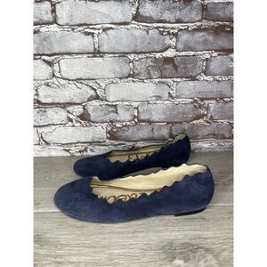 Sam Edelman Frances Blue Suede Leather Slip On Scalloped Flats Women Sz 9M US/39