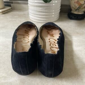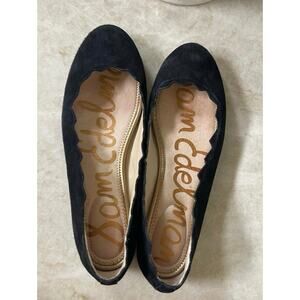Sam Edelman Francis scalloped black suede leather flats Sz 9-1/2 EUC