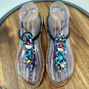 Sam Edelman Gabrielle Sandals Blue Multicolor Beads & Shells Women's 7.5