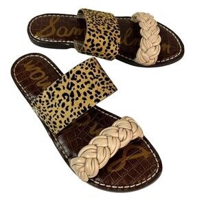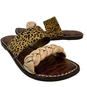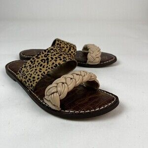 Sam Edelman Gage Slide Sandals Womens Size 7 Snakeskin Tan Braided Leather Brown