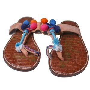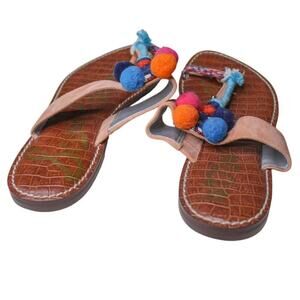 Sam Edelman Gemina Toe Strap Sandal Pompoms Slip On Boho Resort 9M