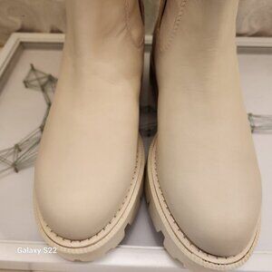 Sam Edelman Genia back zip Chelsea lug boot in Ivory leather. NIB. Size 6. One very light orange stain on side of one boot, very light. Smoke free home. No odors. All offers are welcome. Thank you!