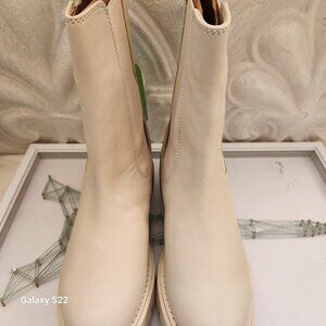 Sam Edelman Genia back zip Chelsea lug boot in Ivory leather. NIB. Size 6