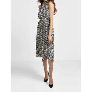 NWT Sam Edelman Geo Mock Neck Smock Waist Dress. Our high neck midi geometric dress, with lurex stripes, is a stunning black and white gown. The elastic waist is feminine, and the intricate stripes are sure to mesmerize.