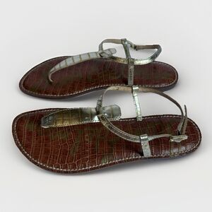 Sam Edelman Gigi Gold Sandals Size 9.5 Thong Slingback Flat Faux Crocodile