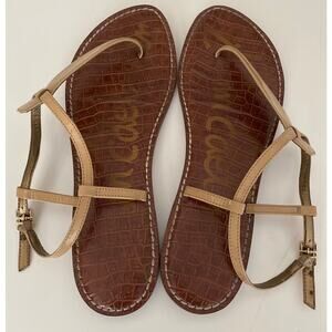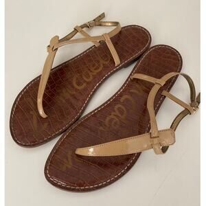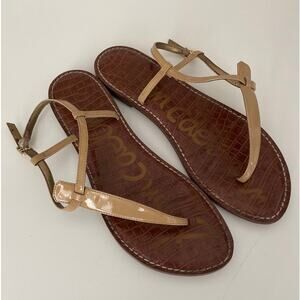 Sam Edelman Gigi Patent Leather T Strap Flat Sandal Thong Toe Nude Tan 11