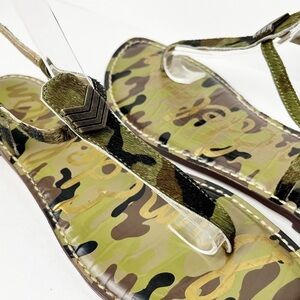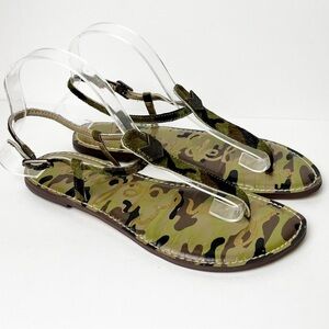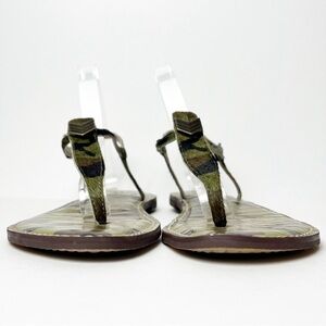 Sam Edelman Gigi Thong Sandals 8.5 leather camo camouflage green strappy flat